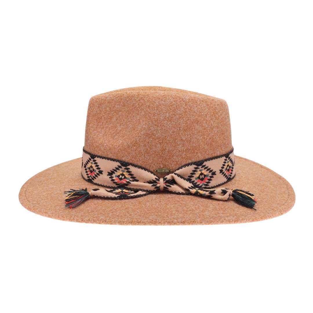 Aztec Trim Band Vegan Fabric C.C Panama Hat: Dk taupe
