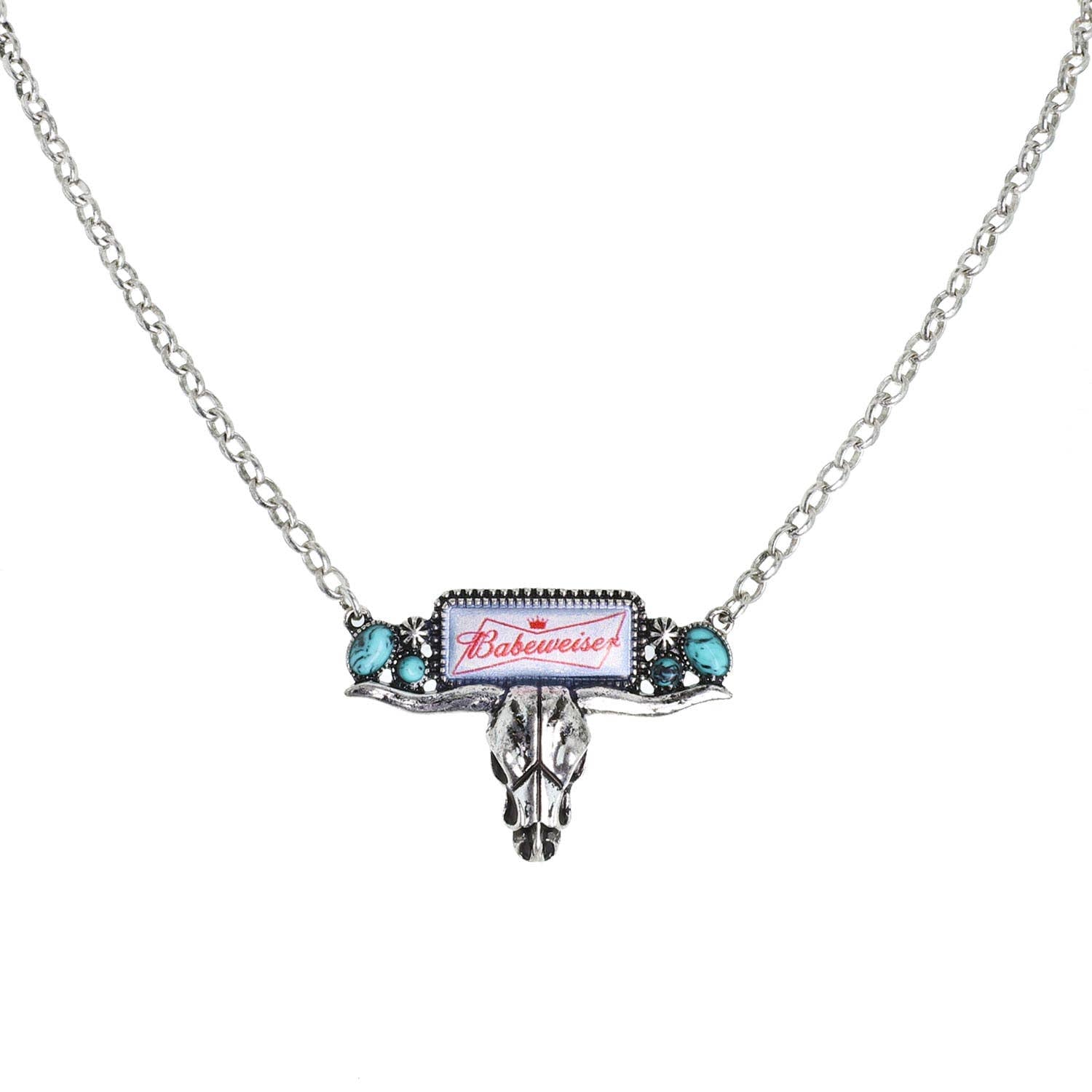 Enamel "Babeweiser" Longhorn Skull Charm Necklace
