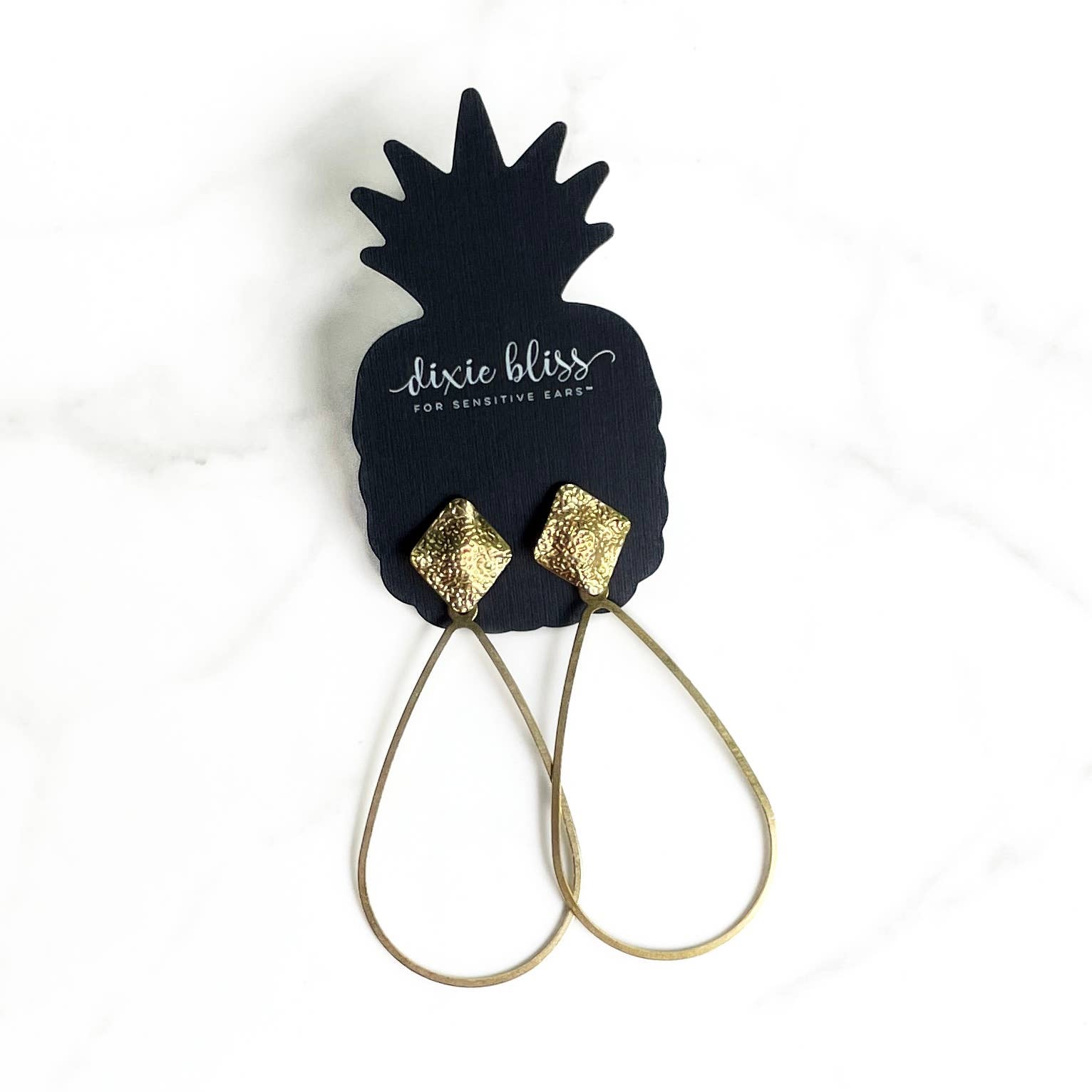 One Page in a Book makes a statement and features: *Textured Brass Stud *Vintage Brass Patina Teardrop *Measures 3.3" from the top *Posts are Stainless Steel *Great for sensitive ears *Made in the USA