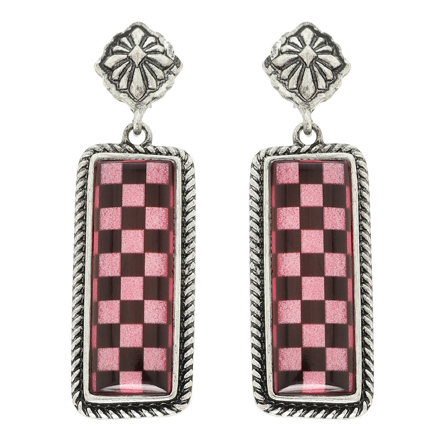 Western Epoxy Checkerboard Bar Post Earring: Fuchsia